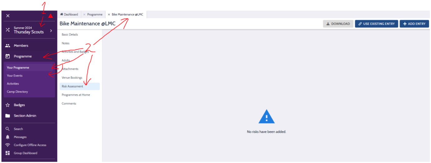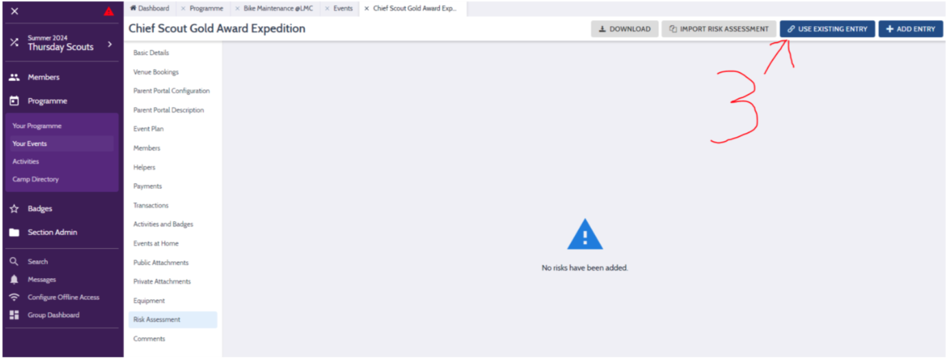 Once created, risk assessments in OSM can be easily shared between groups, but you have to know where to look! We have therefore created a repository within the Adults (Executive committee and SAS) section. It would be appreciated if all risk assessments could be written here so that they can be made available to the rest of the group.